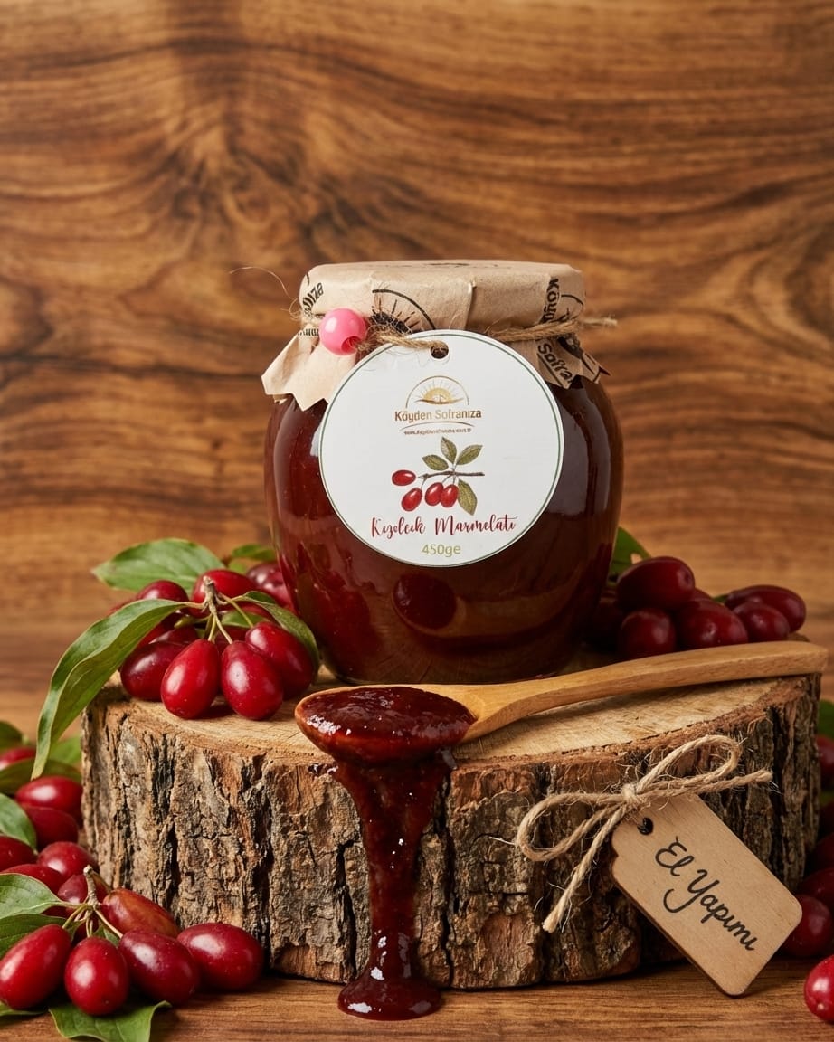 “Köyden Sofranıza Kuşburnu Marmelatı”, Anadolu’nun sarp yamaçlarından tam mevsiminde toplanan en kaliteli kuşburnu meyvelerinden hazırlanır. Kuşburnunun o kendine has hafif mayhoş tadını ve yüksek besin değerini korumak için, meyveler geleneksel yöntemlerle tek tek elenir, çekirdeklerinden arındırılır ve ipeksi bir kıvam alana kadar ağır ağır pişirilir. İçindeki yoğun meyve özüyle, bağışıklığınızı destekleyecek en doğal kahvaltılığı sunuyoruz.
